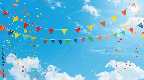 Flag Day Sky Background: Red Flags Soar in the Firmament, Spreading a Grand Poem of the Interweaving of Vast Skies and Fluttering Flags
