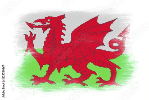 Flag of Wales, Painted grunge flag, brush strokes. Isolated on white background