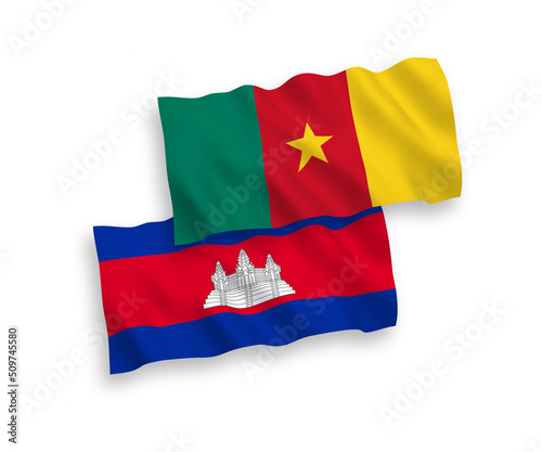 Flags of Kingdom of Cambodia and Cameroon on a white background