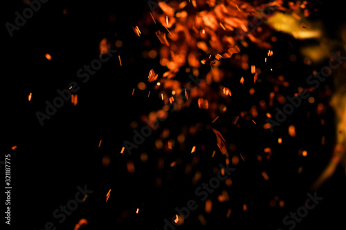 flame of fire with sparks on a black background