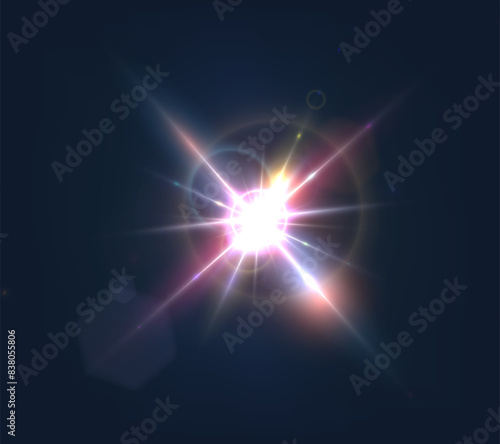 Flash, realistic highlights, glowing effects, camera light, sunlight reflection, stars, isolated highlights, sparkling highlights. Isolated on transparent background, png. Celestial, space elements