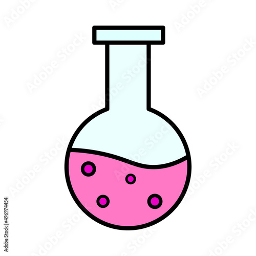 Flask with pink liquid in flat style. Vector illustration. stock image.