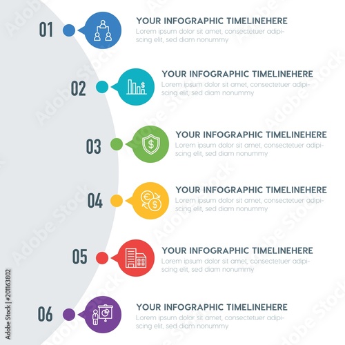 Flat business, money infographic timeline template with 7 options for presentations, advertising, annual reports