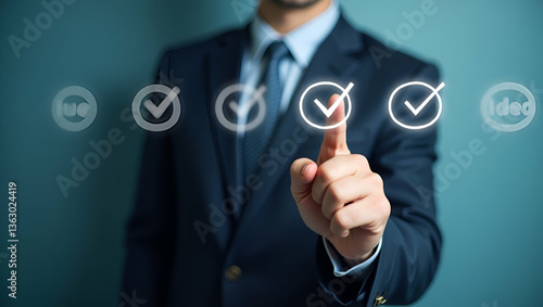 Flat Businessman Tapping Checklist Tick Mark with Progress Bar for Effective Project Management Tracking