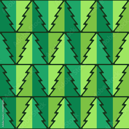 Flat colorful christmas trees seamless pattern. Repeated Xmas symbols.