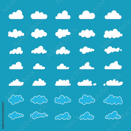 Flat design clouds capes collection set. Flat shadows. Clouds, flat design collection Vector illustration