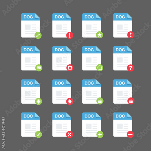 Flat design with DOC files icon set ,symbol set, vector design element illustration
