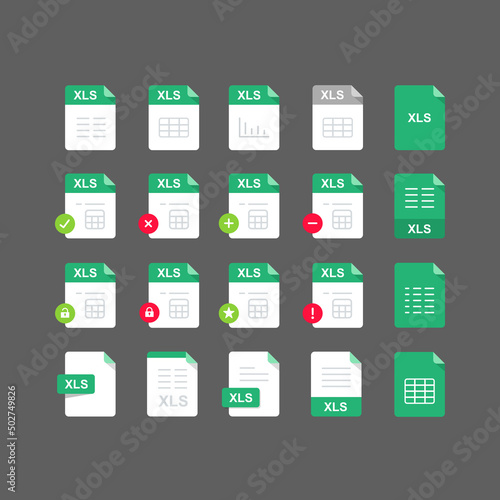 Flat design with XLS files icon set ,symbol set, vector design element illustration