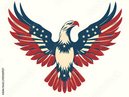 Flat Eagle emblem and folded flag with Proud to Serve text concept as A patriotic abstract vector featuring an eagle emblem and a folded American flag isolated on a white background. The text Proud to