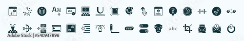 flat filled user interface icons set. glyph icons such as disconnect, spellcheck, painter palette, answer, round done button, archer, expand tool, gross pencil, smiles, open envelope, new message