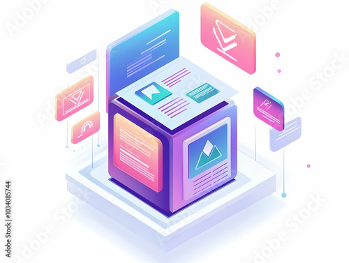 Flat Floating Holographic Ballot with Interactive Policy Overlays - Close-Up Vector Illustration of Voter Information Space and Dynamic Holograms