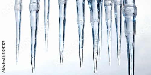 Flat Floating Icicles with Sharp Tips Isolated on White Background - A Set of Gravity-Defying Icicles for Winter Weather Infographics and Product Breakdowns
