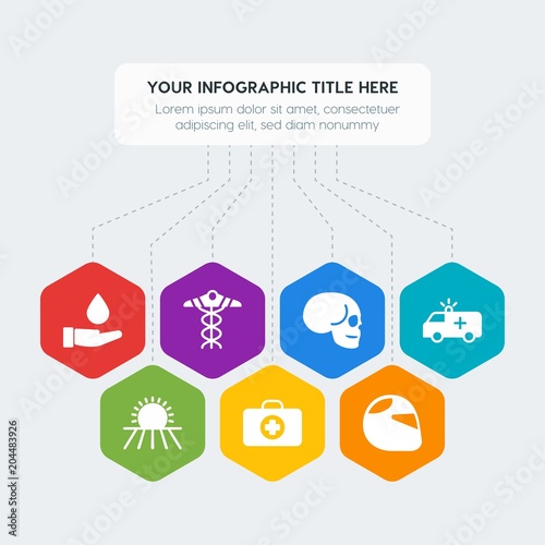 Flat geometric health, sports, nature infographic steps template with 7 options for presentations, advertising, annual reports