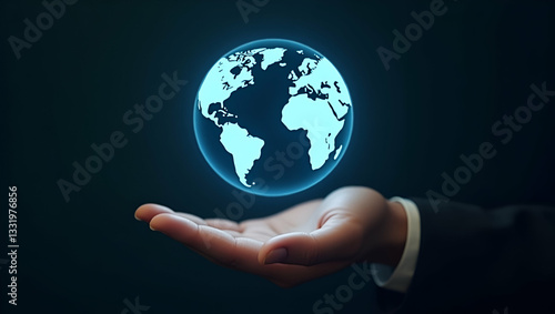 Flat Hand Showcasing Holographic Investment Climate Change Symbol: A Minimalist Vector Illustration for Smart Business Strategies in Climate Change Investments