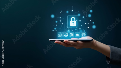 Flat Hand with Holographic Digital Payment Interface for Fintech Success