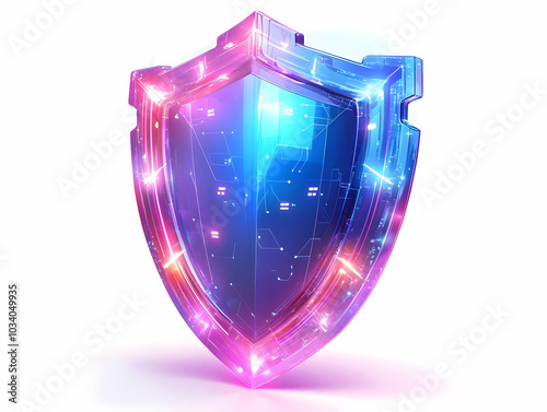 Flat Holographic Election Security Shield Concept - Close-Up of Glowing Shield Symbolizing Election Integrity, Rotating to Reveal Security Features, Simple Flat Vector Illustration on White Background