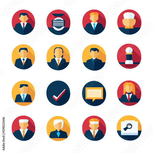 Flat Icon Set Representing Business People, Professions, and Concepts