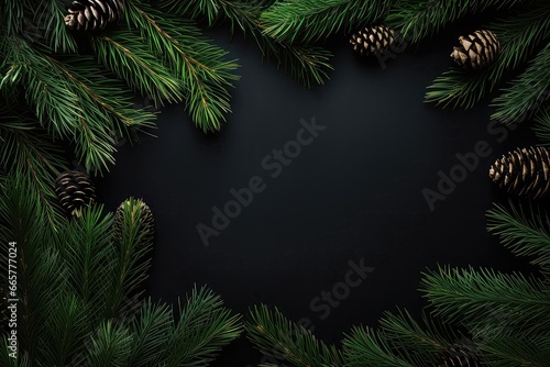 Flat Lay Composition Featuring Garland, Fir Tree, And Pine Branches, Perfect For The Holiday Season