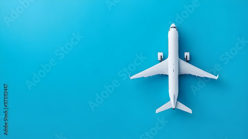 Flat lay design of travel concept with plane on blue background with copy space