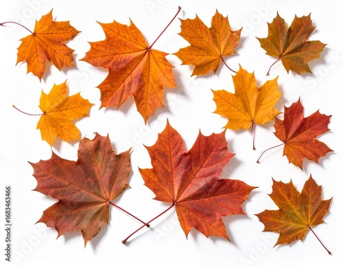 Flat Lay of Autumn Maple Leaves on White Background – Realistic Shadows, Cutout Ready