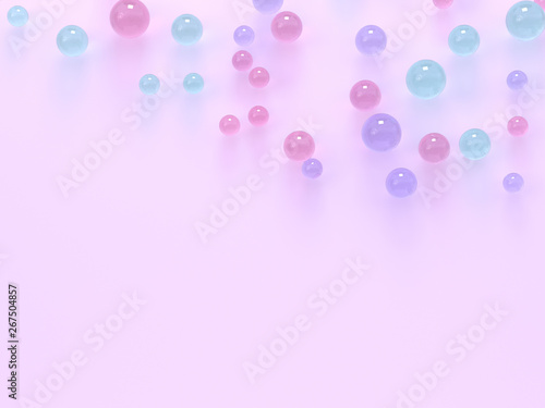 flat lay pink pastel scene many spheres/ball colorful bottom copy space 3d rendering