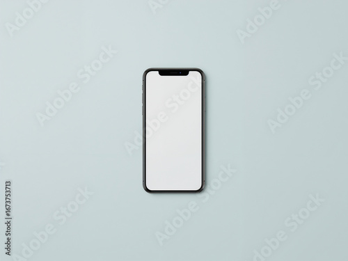 Flat lay smartphone mockup with blank white screen on light blue background blank screen technology