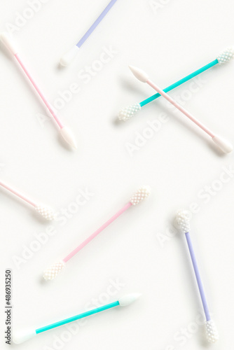 Flat lay top view reusable silicone swab buds on white background