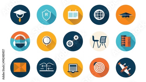 Flat Long Shadow Icon Set.