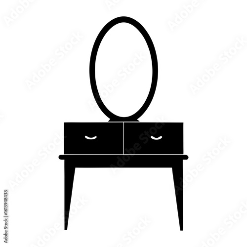 Flat silhouette of modern vanity table with mirror shown in clean minimalist vector artwork