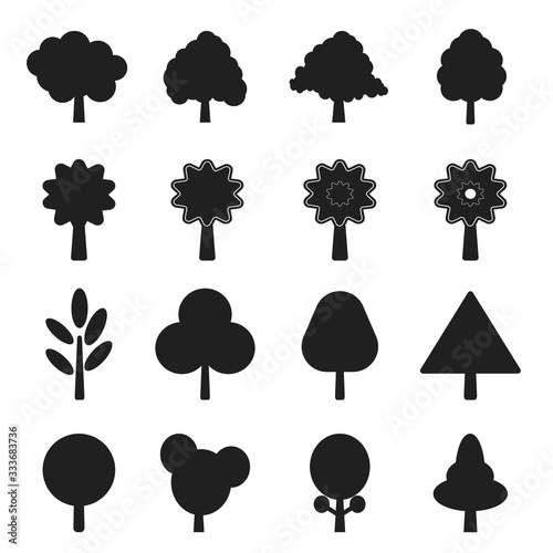 Flat tree icon set illustration on white background.Isolated vector tree simple design of forest.