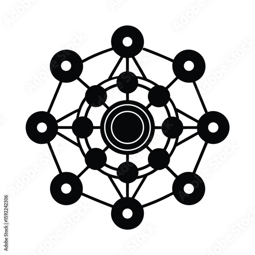 Flat Vector Design of Concentric Circles with Interconnecting Lines and Colorful Elements