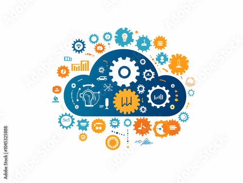 Flat Vector Icon Cloud Gears Cloud Computing Business Solutions Modern Illustration Efficient Processes Infographic Technology Digital Transformation Simple Design