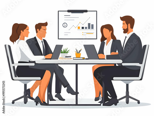 Flat Vector Illustration of Business Team in Meeting Room Finalizing Acquisition Terms - Candid Shot Emphasizing Corporate Negotiations and Seriousness for Marketing