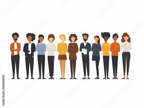 Flat Vector Illustration of Diverse Crowd Waiting in Line to Vote: Emphasizing Commitment to Democracy with Various Ages and Ethnicities in a Wide Angle View.