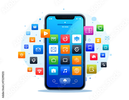 Flat Vector Illustration of Mobile App Development, Transparent Background