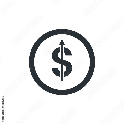 flat vector illustration on white background, dollar icon with an upward arrow in a circle, growth of currencies