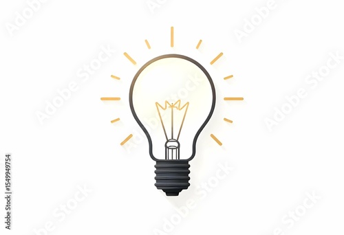 Flat vector of a classic lightbulb with small rays around it, clean stroke, black on white, representing creativity or business innovation
