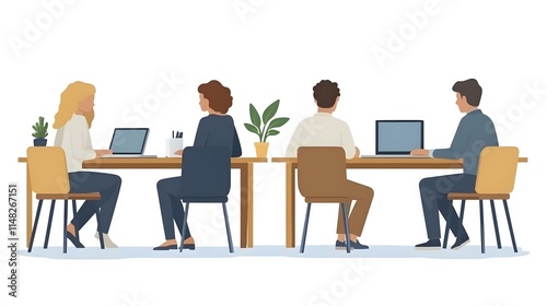 Flat vector of employees working with digital tools to enhance their skills