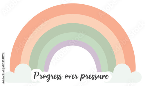 Flat vector rainbow arc symbolizing gentle progress and hope. Perfect for motivational stickers, uplifting visuals, or positivity themes in a soft, minimal style.