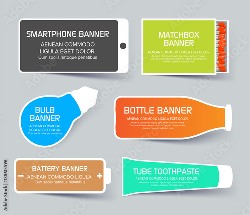 Flat web layout set of colorful banners in different shapes.