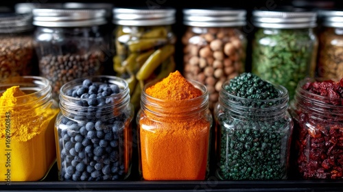 Flatlay jars spices grains photography lifestyle organic natural gourmet culinary inspiration decor
