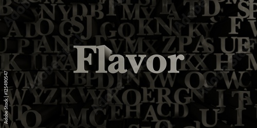 Flavor - Stock image of 3D rendered metallic typeset headline illustration. Can be used for an online banner ad or a print postcard.
