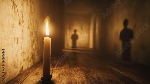 Flickering Candle Casting Dancing Shadows in Dimly Lit Room