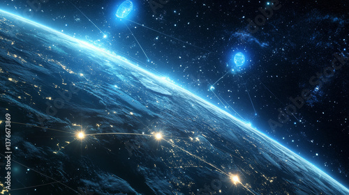 Flight. High speed internet technology. Portal 3D illustration. Space and time, global digital database in cyberspace of artificial intelligence