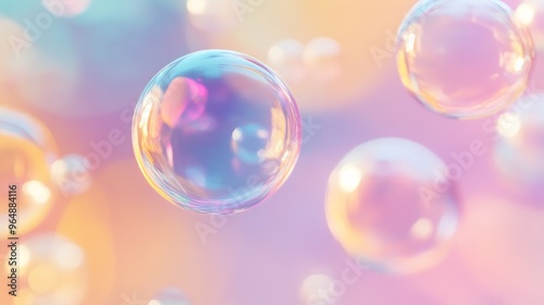 Floating bubbles with pastel colors, abstract dreamy background. Serenity and whimsy concept