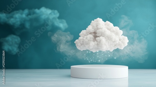Floating cloud illustration on white platform digital art modern aesthetic concept