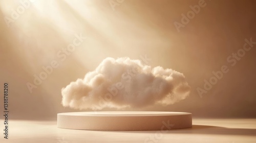 Floating Cloud on Beige Pedestal, Studio Light, Product Display