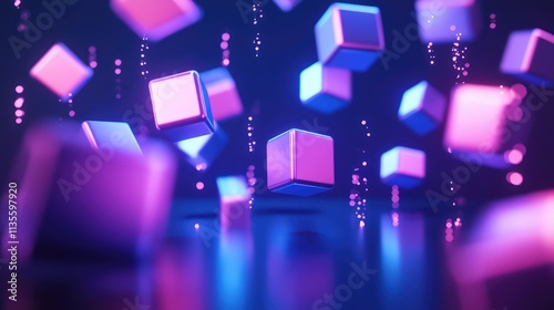 Floating Colorful Cubes with Glowing Effects in Dark Background