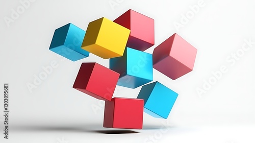 Floating Cubes: A visually striking arrangement of colorful, geometric cubes suspended in mid-air, creating a dynamic composition of form, color, and spatial relationships.