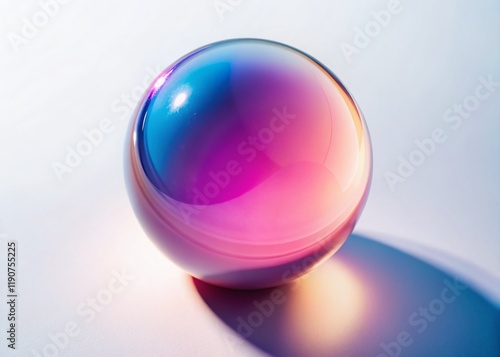 Floating Glass Orb: Gradient Pink & Gray Sphere on White Background - Drone Aerial View